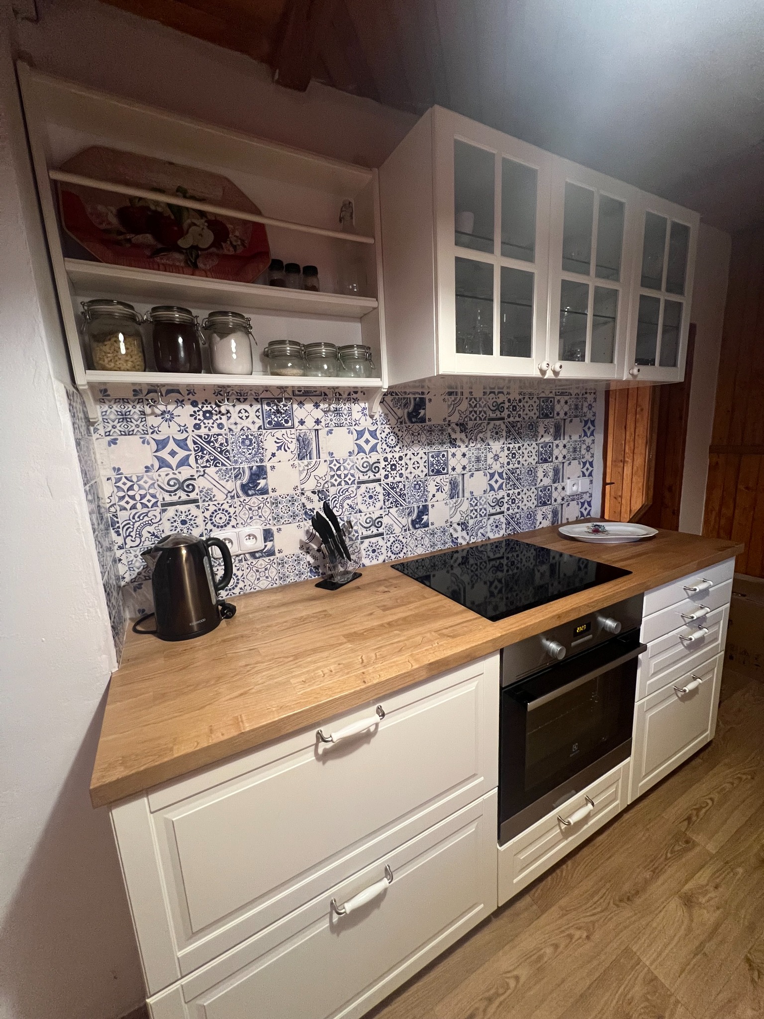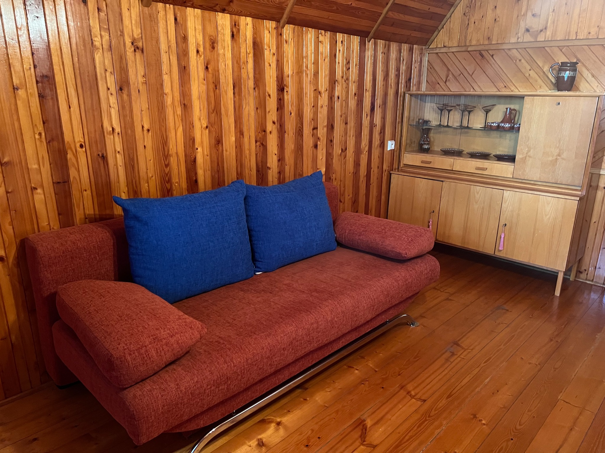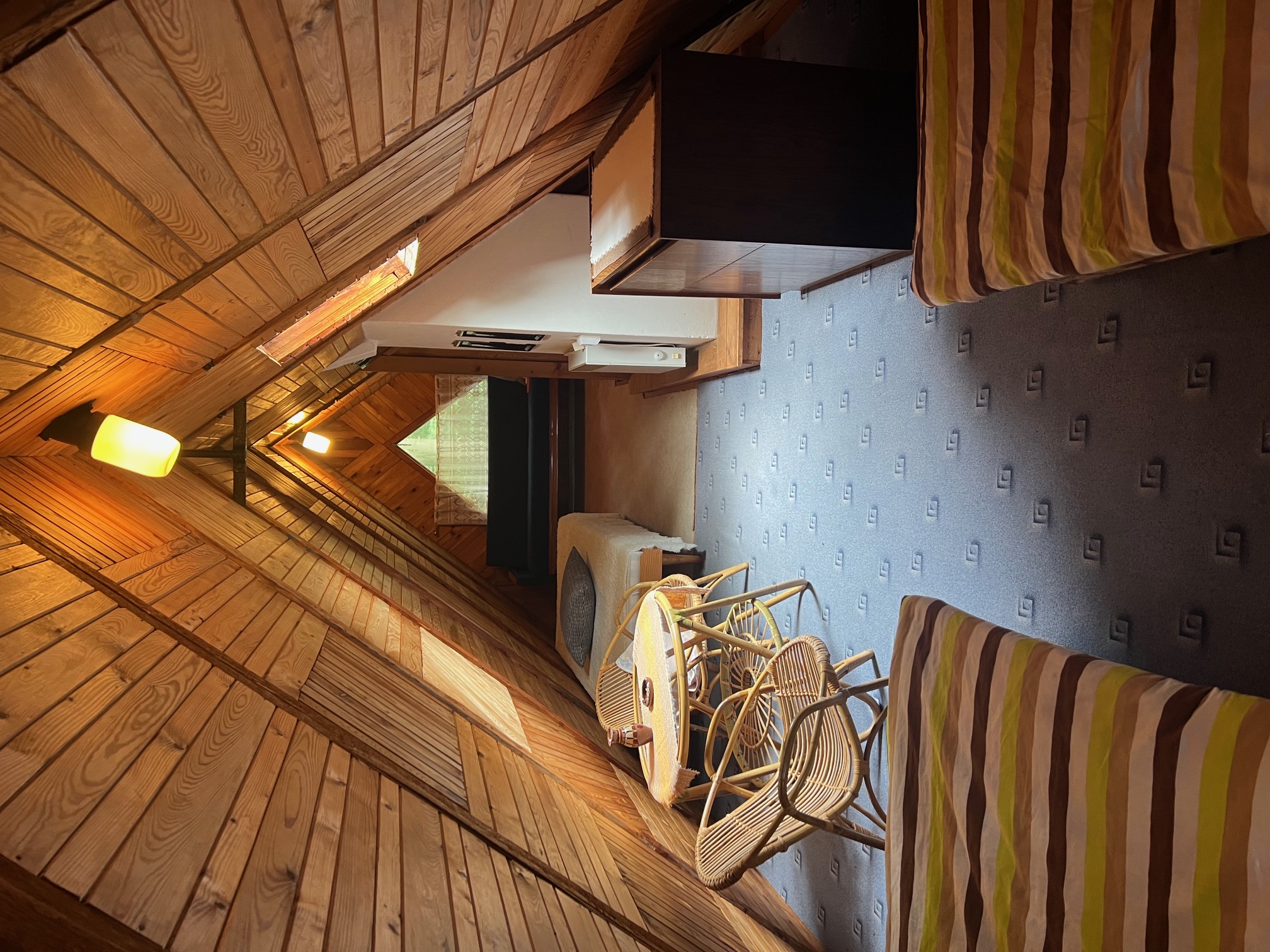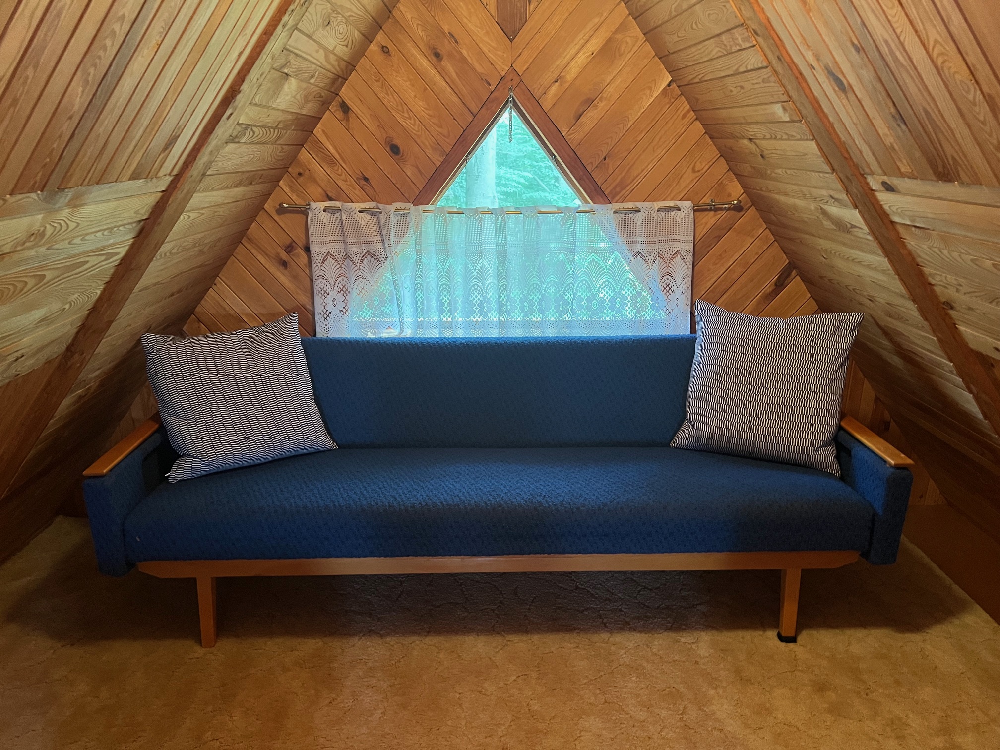 Chatu nabízíme těm, kteří potřebují odpojit hlavu od obrazovek a zase jednou cítit, jaké to je být venku. Záměrně zde není televizor ani internet – vyměníte je za vůni pryskyřice, praskání krbu a večerní oblohu plnou hvězd. V přízemí je technické zázemí a nová koupelna se sprchou, v 1. patře kuchyně s jídelním koutem a obývací pokoj s krbem. V podkroví najdete čtyři lůžka a útulný čtecí koutek. Hlavní ložnice nabízí manželské lůžko a pohovku.